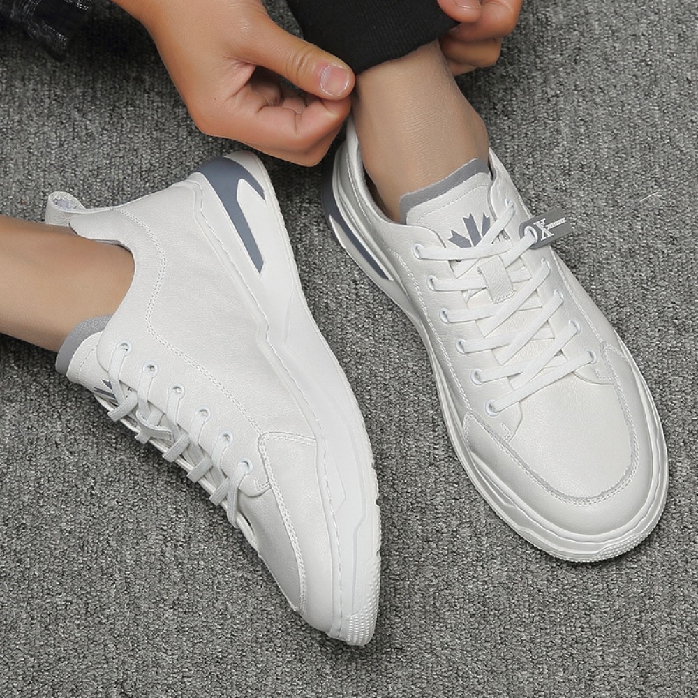 Autumn New White Men's Casual Thick-Soled Trend Sports Leather Shoes