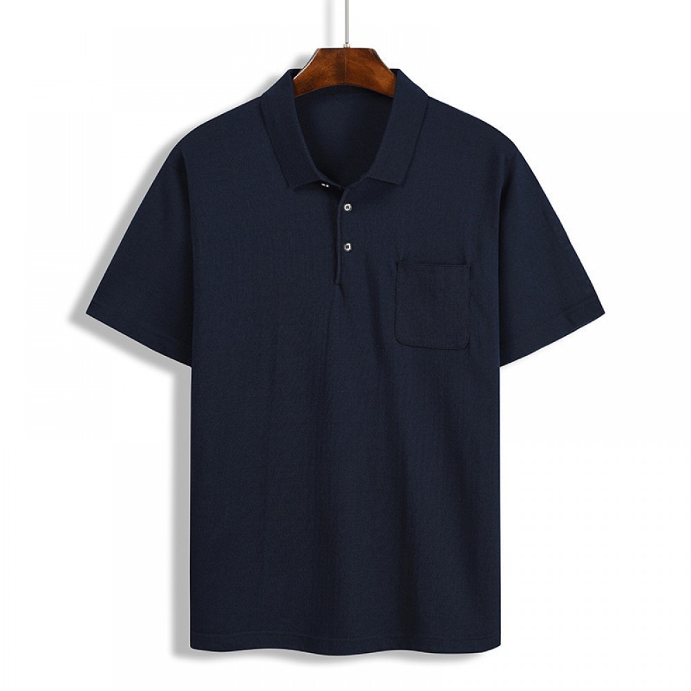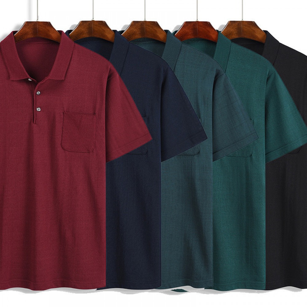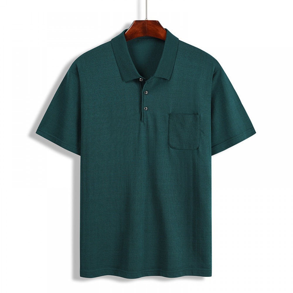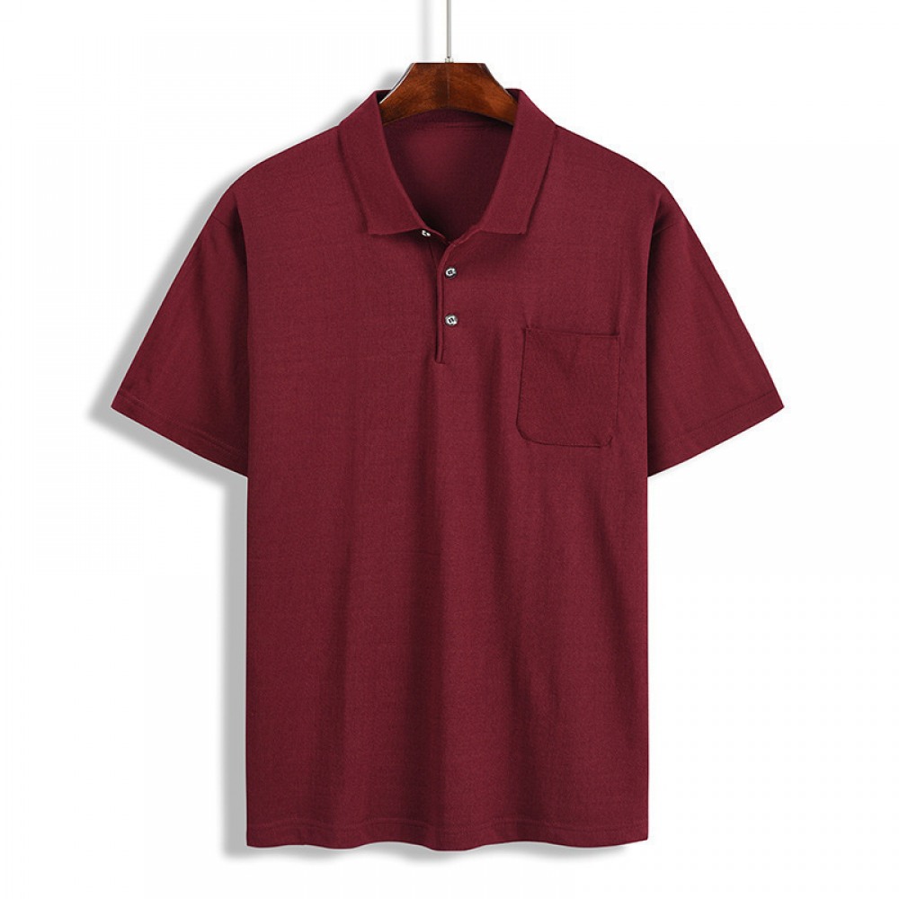 Men's Pullover T-Shirt Youth Solid Color Pocket Lapel T-Shirt
