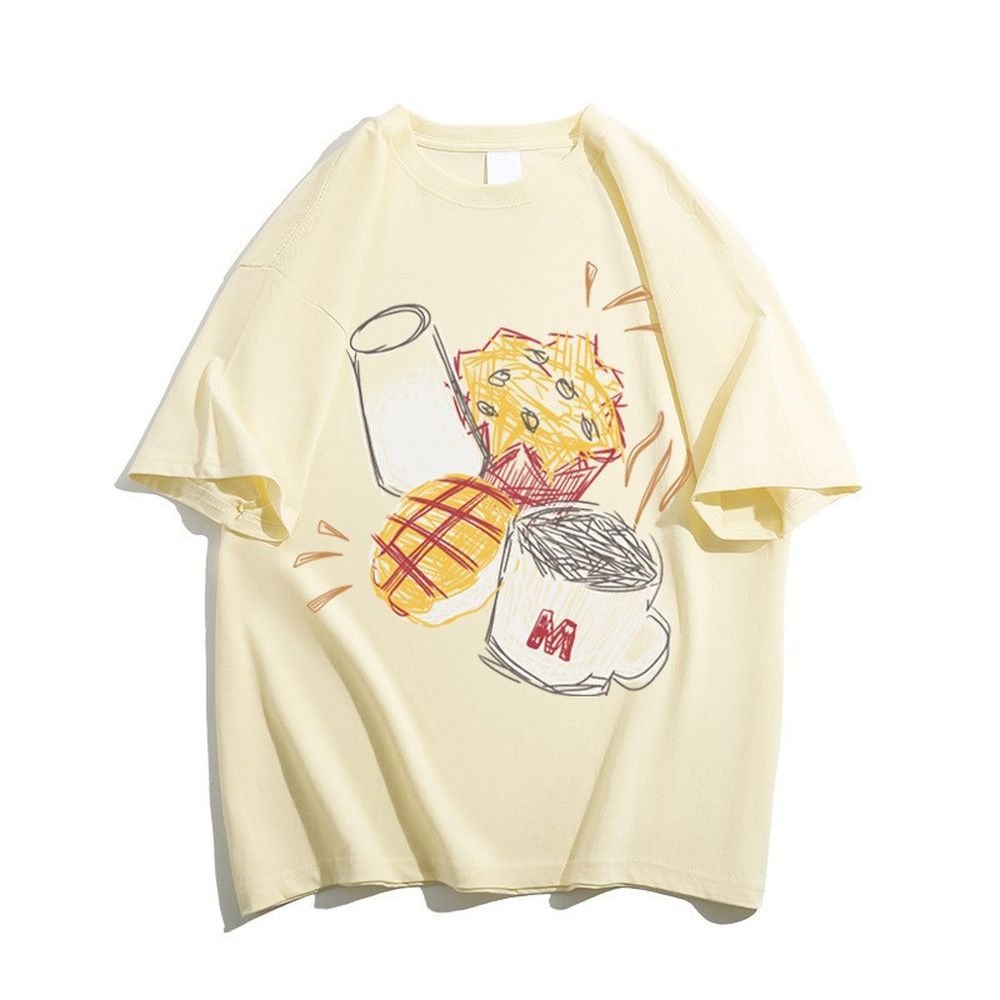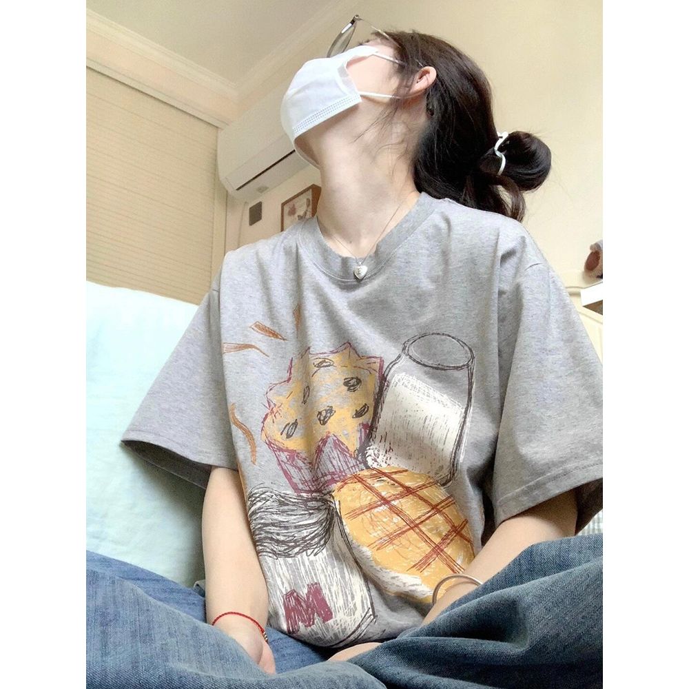 Women's Cotton Short-Sleeved T-Shirt With Retro Print Round Neck And Half Sleeves