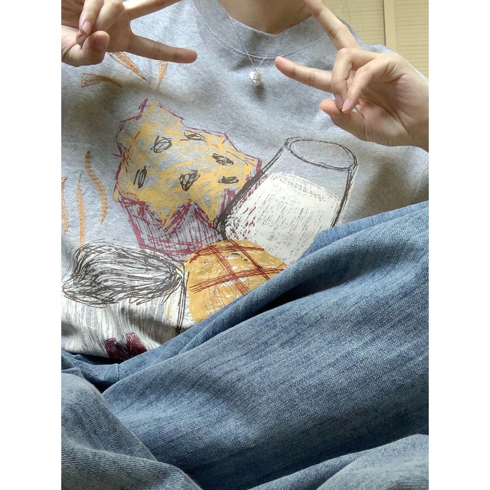 Print Round Neck Short Sleeve T-Shirt Women