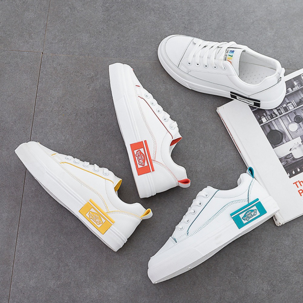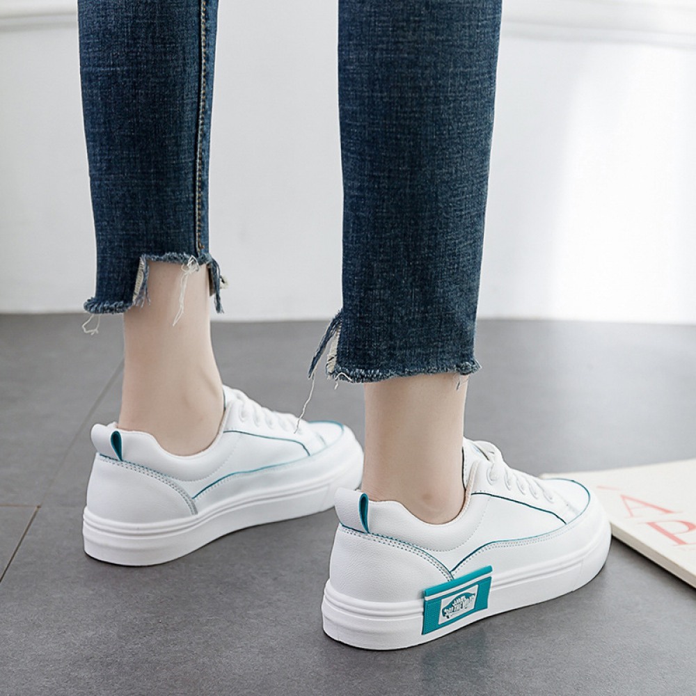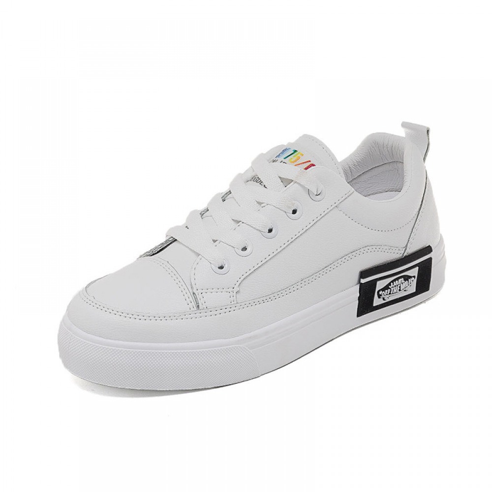 Basic White Flat Running Shoes Women's Lace-Up Platform Shoes