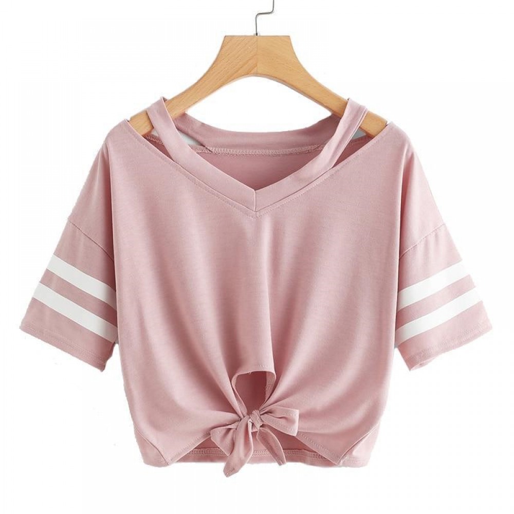 Women's New Style Bandage V-Neck Short-Sleeved T-Shirt