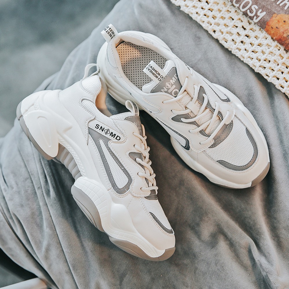 Women's Summer Breathable Thick-Soled Small Mesh Sports Casual Shoes White