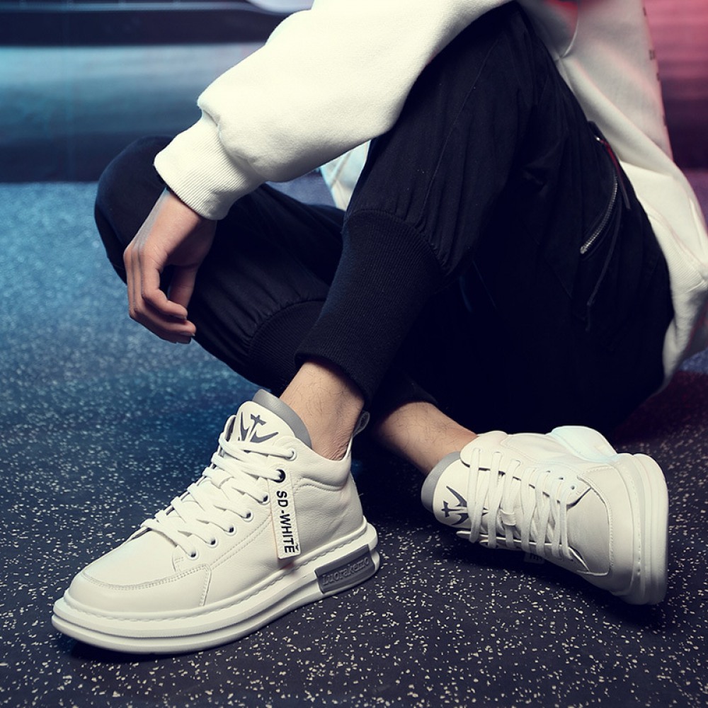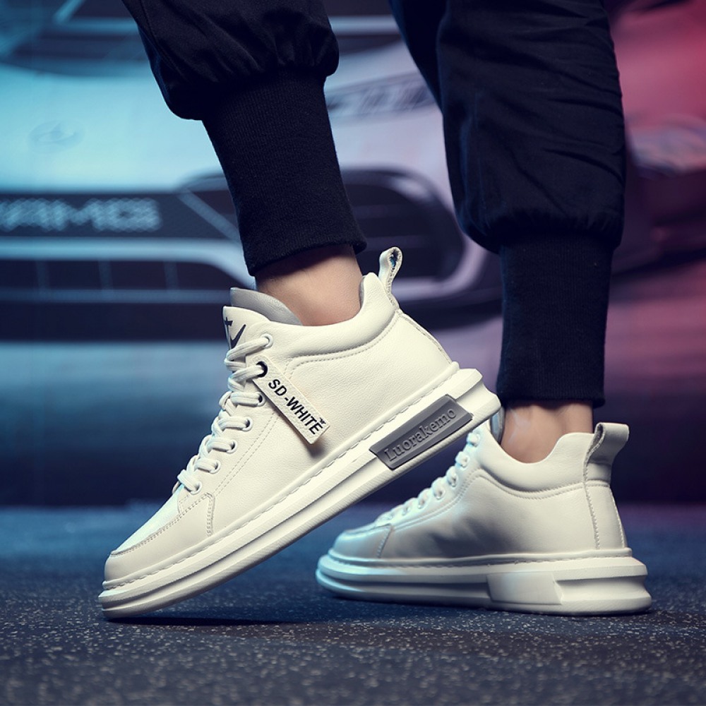 Autumn New White Men's Casual Thick-Soled Trend Sports Leather Shoes