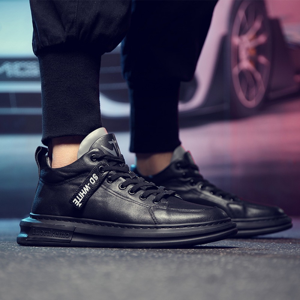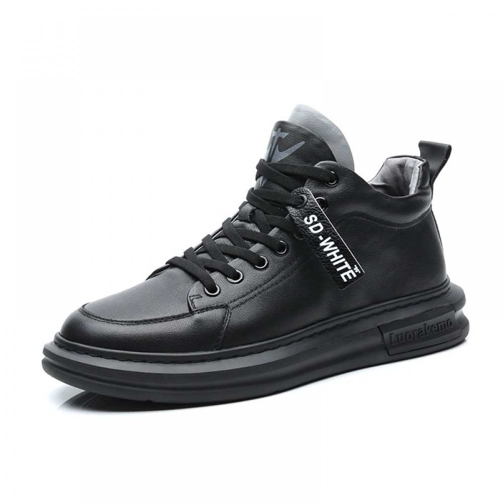 Men's Leather Mid-Top Boots High-Top Casual Shoes Increased Martin Boots Black