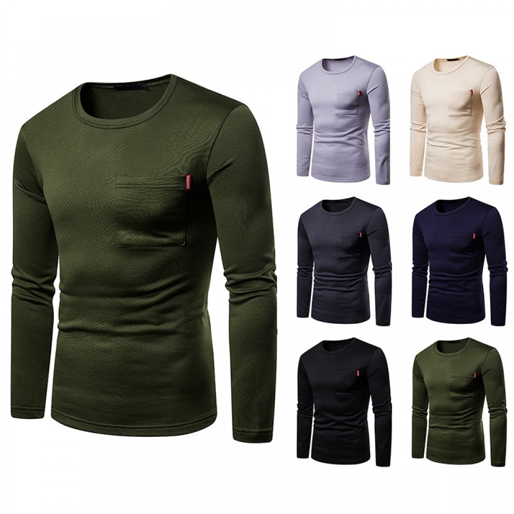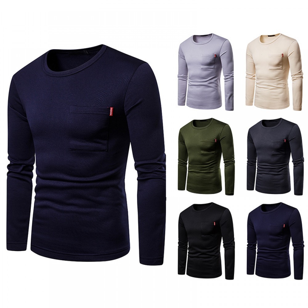 Men's Plus Size Plus Velvet Warm Long-Sleeved Round Neck T-Shirt Bottoming Shirt