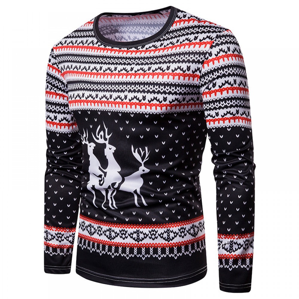 New 3D Personality Printing Fashion Men's Christmas Elk Pattern Long-Sleeved T-Shirt
