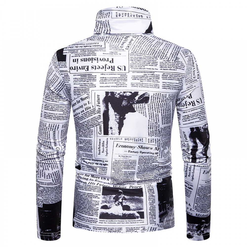 New Men's Large Size 3D English Printing High Neck Long Sleeve T-Shirt Bottoming Shirt