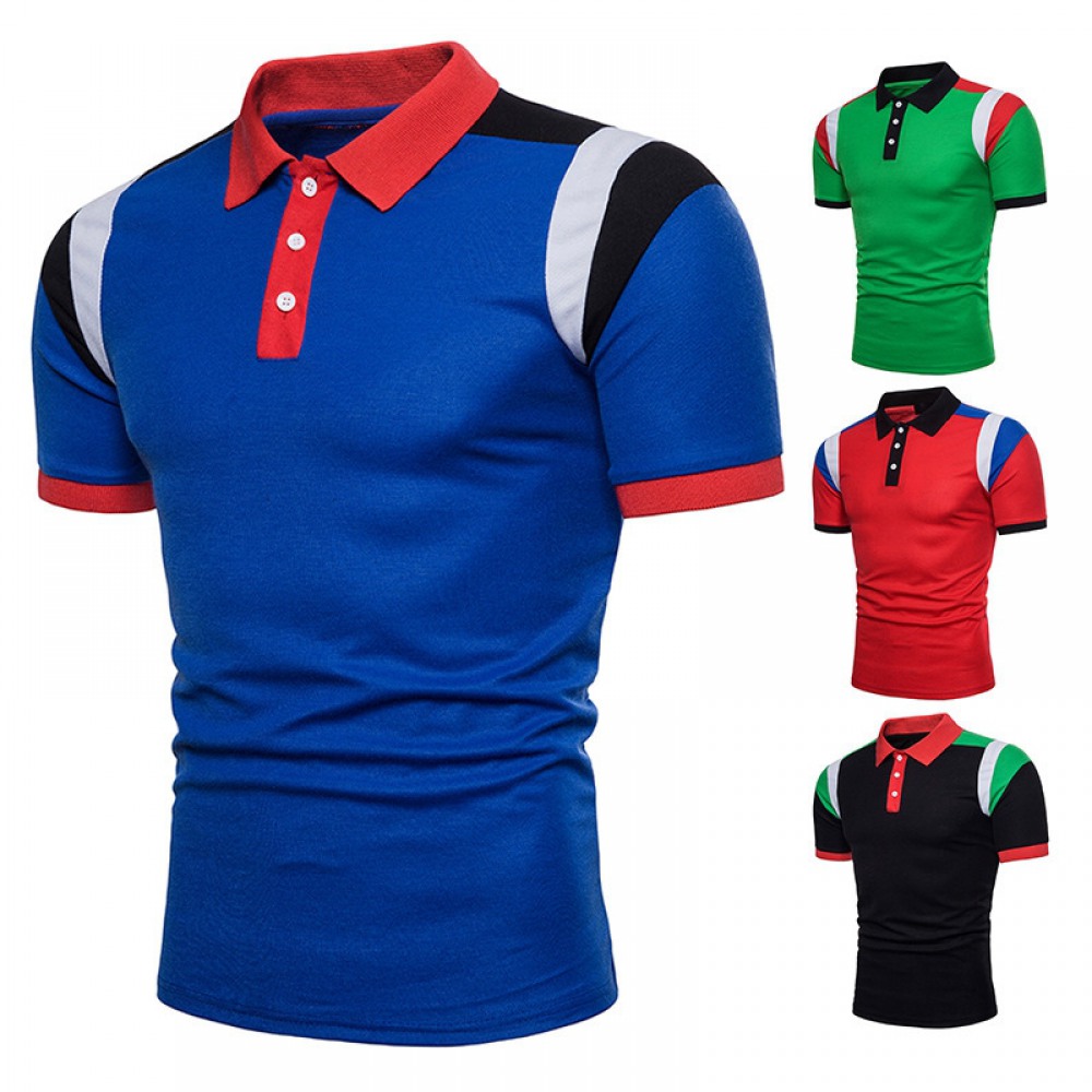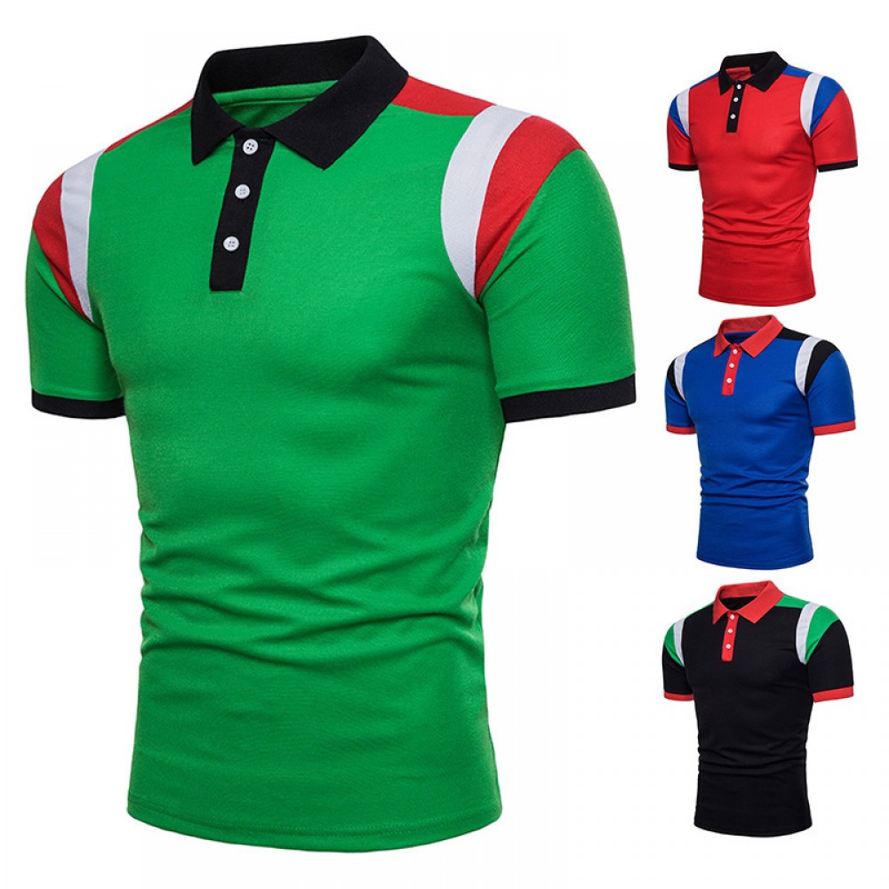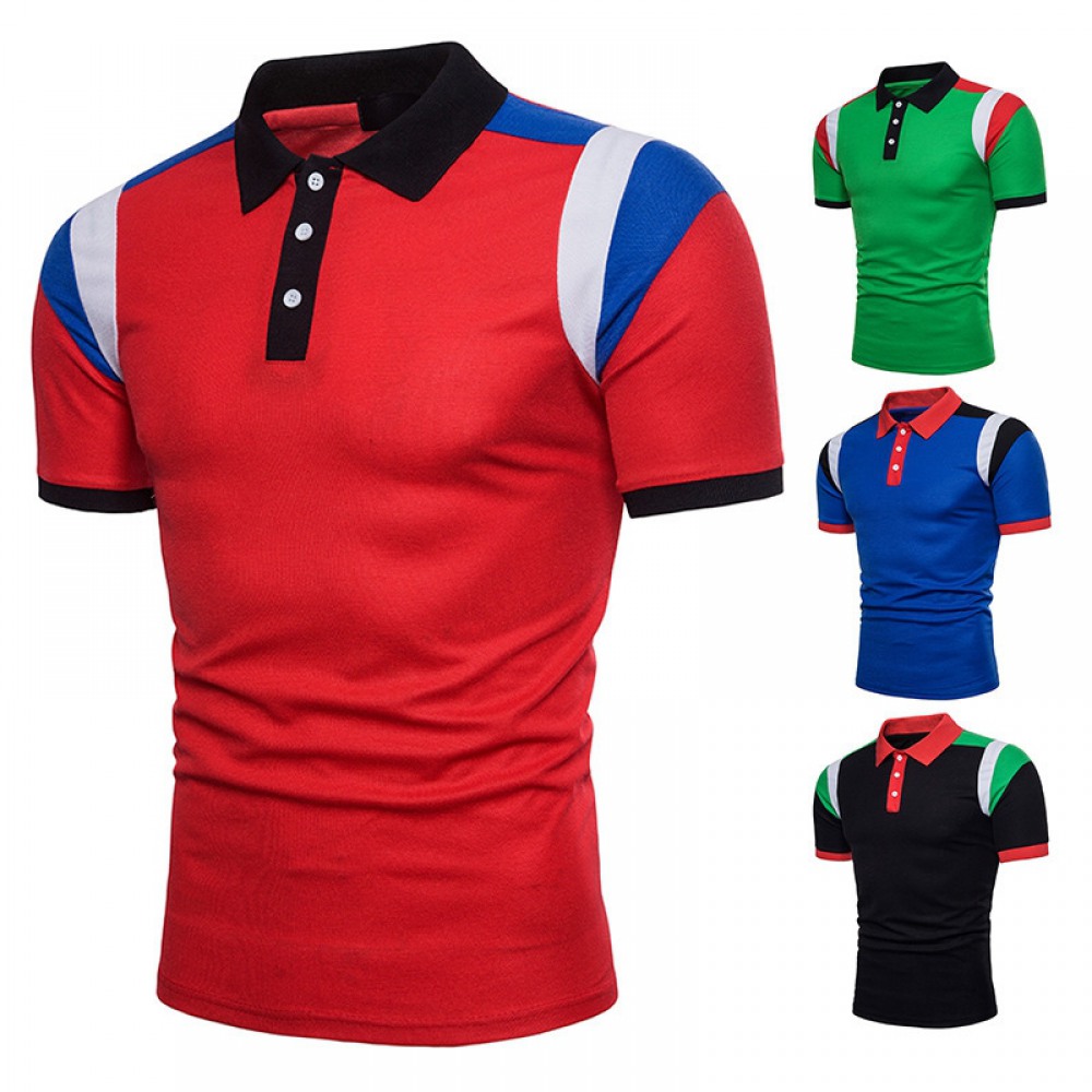 Men's Pullover T-Shirt Youth Solid Color Pocket Lapel T-Shirt