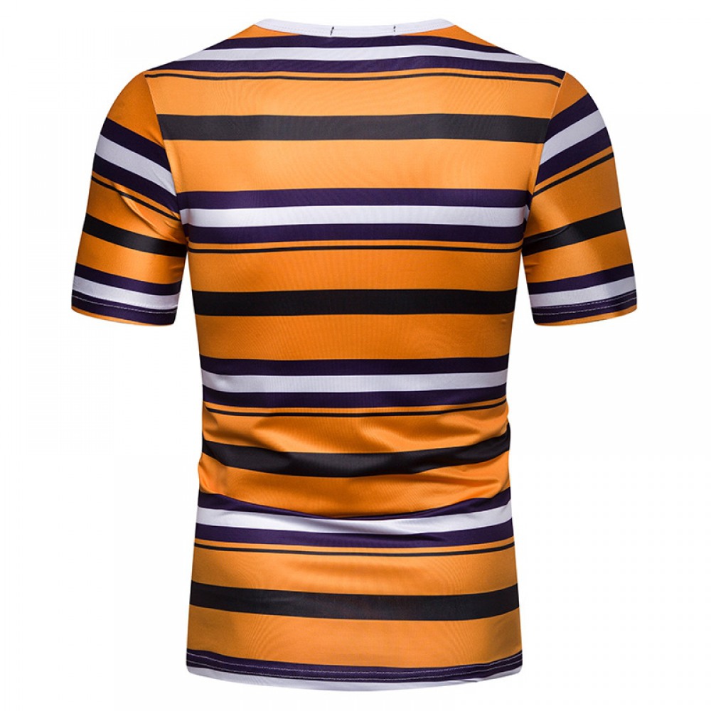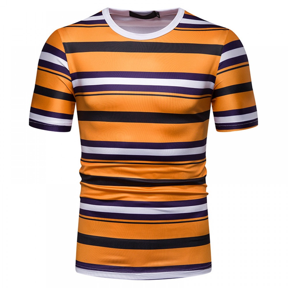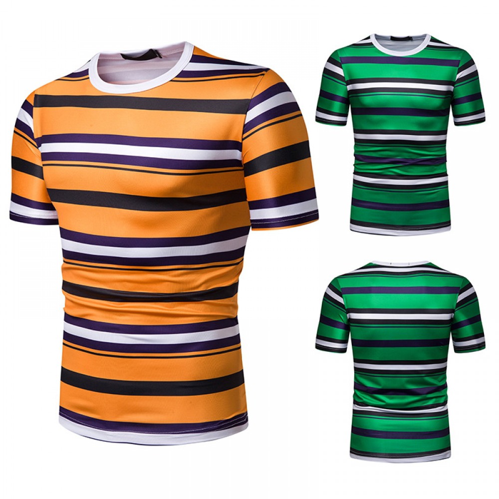 New Summer Men's Short-Sleeved T-Shirt Mens Contrast Striped Slim-Fit T-Shirt