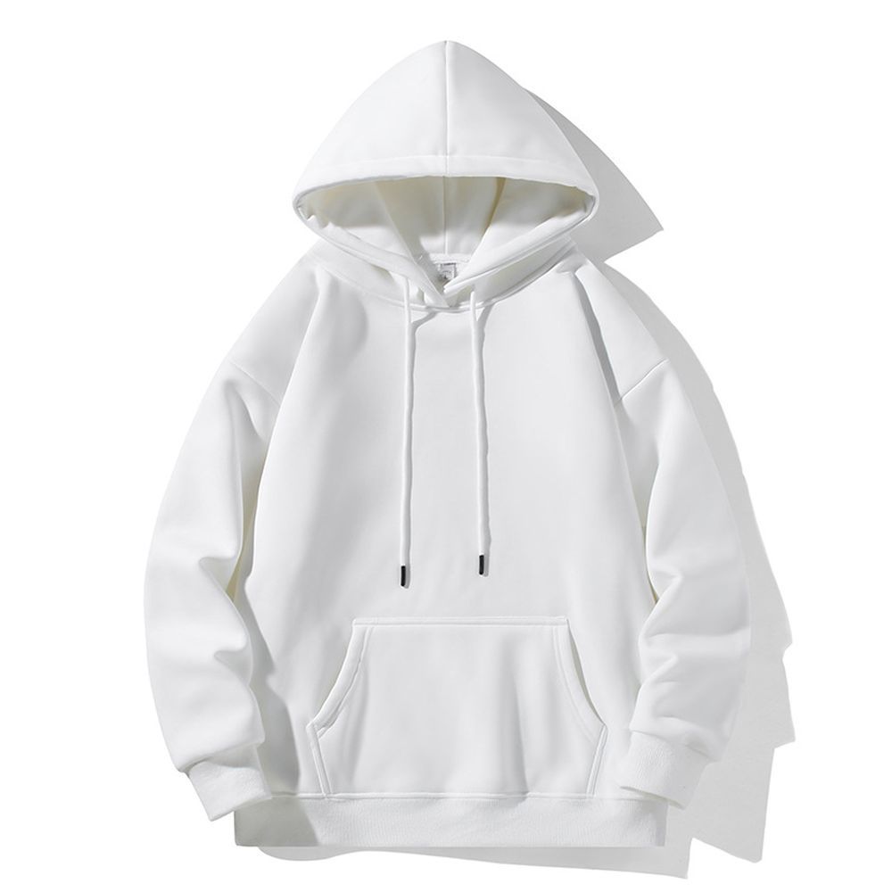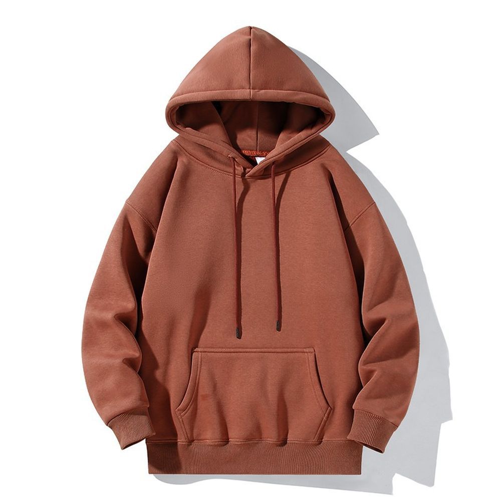 Simple Retro Men's Hoodie Fleece-lined Thick Loose-fitting Solid Color Basic Jacket
