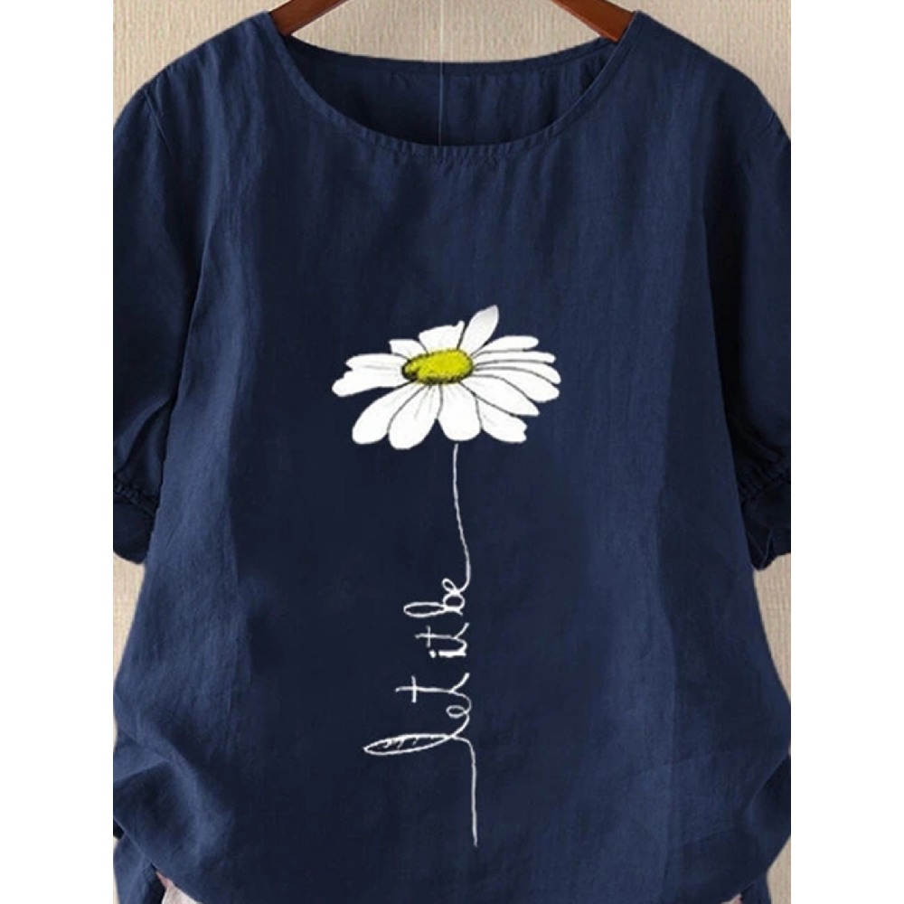Summer New Style Print Short-Sleeved Round Neck Pullover Loose Large Size Women's T-Shirt Top