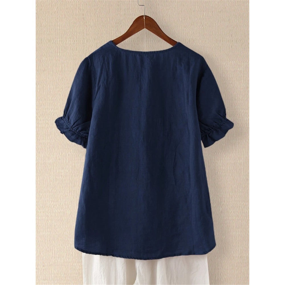 Summer New V-Neck Pineapple Applique Short Sleeve T-Shirt